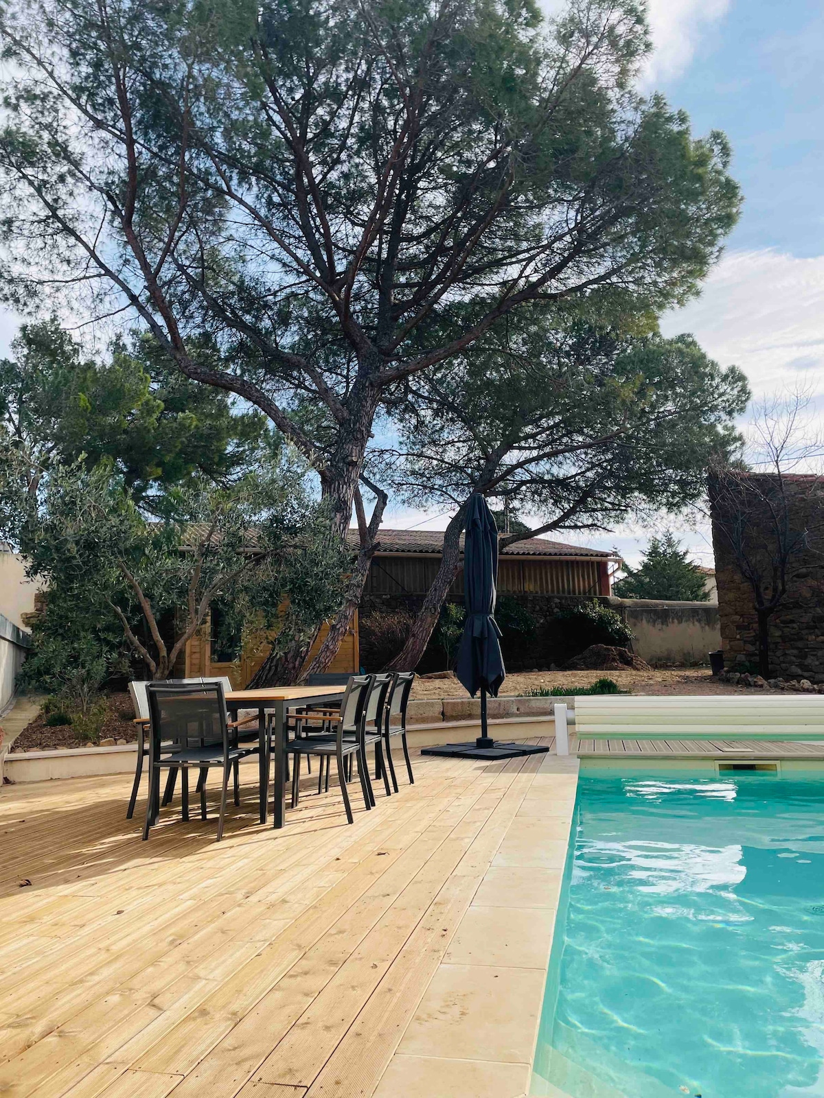 In the heart of a family wine estate, a former Roman villa: come discover this unique, quiet, comfortable, and spacious gîte in the former 19th-century stables Located 700m from the village, crossed by the canal 5 min from the village of Le Somail 15 min from Narbonne Narbovia Museum, the covered market, the Grands Buffets Fontfroide Abbey 20 min from the beaches 30 min from Béziers airport Large swimming pool in the heart of the large park with a pond,trees, open from June to September