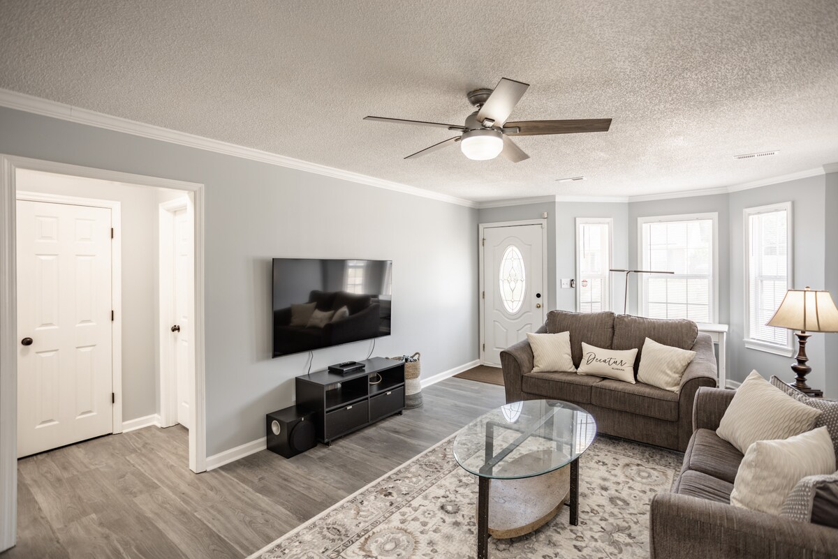 Gorgeous 2 bed, 2 bath patio home with private yard. Garage, Laundry, Central AC/Heat, Hi-speed Internet, 65" TV's and brand new everything! In Decatur's nicest neighborhood, Oak Lea. If you are looking for quiet, spacious and well appointed accommodations you have found it...this one has wow factor and is ready for your visit. Owners are nearby should you need anything. Arrival details will be sent to you 24 hours before your arrival.