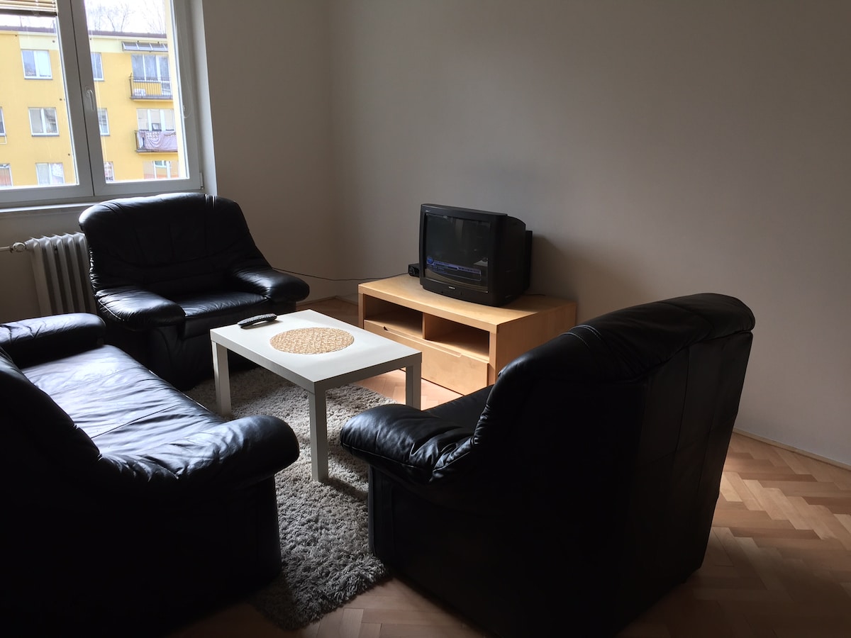 IN ENGLISH: I offer bright 2 rooms flat with living room on the south side. Fully equipped, wifi included, TV + Netflix for your use, free street parking, minutes walk to shops, restaurants and local bus stops. Easy access. ČESKY: Nabízím slunný 2 pokojový byt s obývákem na jižní stranu. Plně vybaven, čerstvě po rekonstrukci, wifi v ceně, TV + Netflix, zdarma parkování na ulici, jen minuty chůze do obchodu, restaurací a městské dopravy. Snadný přístup.
