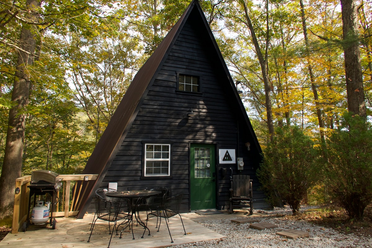 Luxe Glamping A-Frame Cabin-Porch-Hammock-Dogs ok