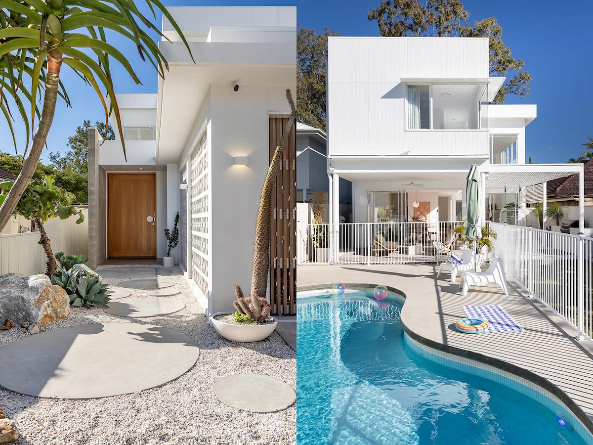 This airy 5-bed home is perfect for families with a love of natural light and modern design features. A truly stunning designer home, complete with a back yard that’s perfect for an active family: it offers a pool, a skateboard ramp, a covered entertainment area, and a small lawn. It’s the ultimate home for families looking for an extended stay, or an interim home when relocating to Brisbane.