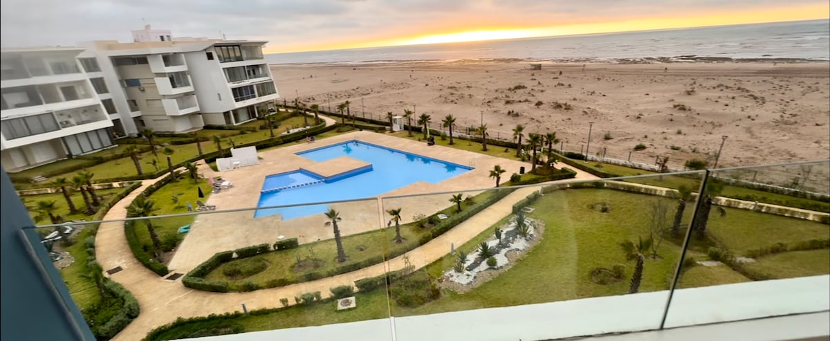 First row waterfront, unique ocean view 20 m away, Hassan II Mosque, and the Corniche. Bright, High Floor, Luxury Service. Fiber, High-Speed Wi-Fi. Seafront Promenade at the bottom of the apartment as well as Restaurant, Café, Bakery, and all amenities. Restaurants, trendy bars within 5 minutes. Supermarket 3 minutes away, Casa Voyageurs Train Station and Port 5 minutes away. Medina, Bazaars 5 Minutes away. RicksCafé, Squala 3 minutes away. HyperCentre, Tram. Free underground parking. Airport Shuttle for a fee