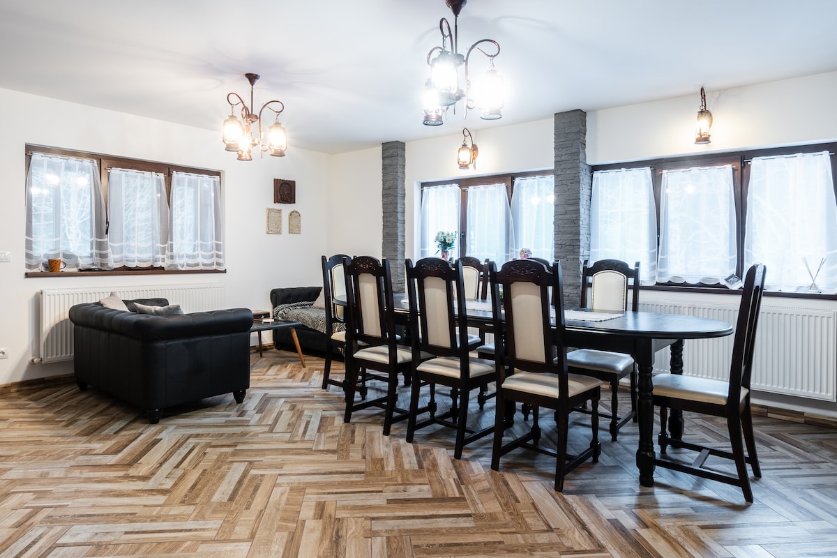 In the Furnica neighborhood, Sinaia lies a charming one of a kind penthouse situated on the second floor of a new modern apartment complex. A five bedroom, three bath condo suited for you and 9 other people. It comes with: -Indoor parking spaces for two large cars and two outside. -A fully stocked utensil kitchen with premium appliances and tableware. Real impressive fireplace and other surprises. -An all-pass access to Disney+, HBO Max, Netflix, Prime Video as well as PS4 with cool games