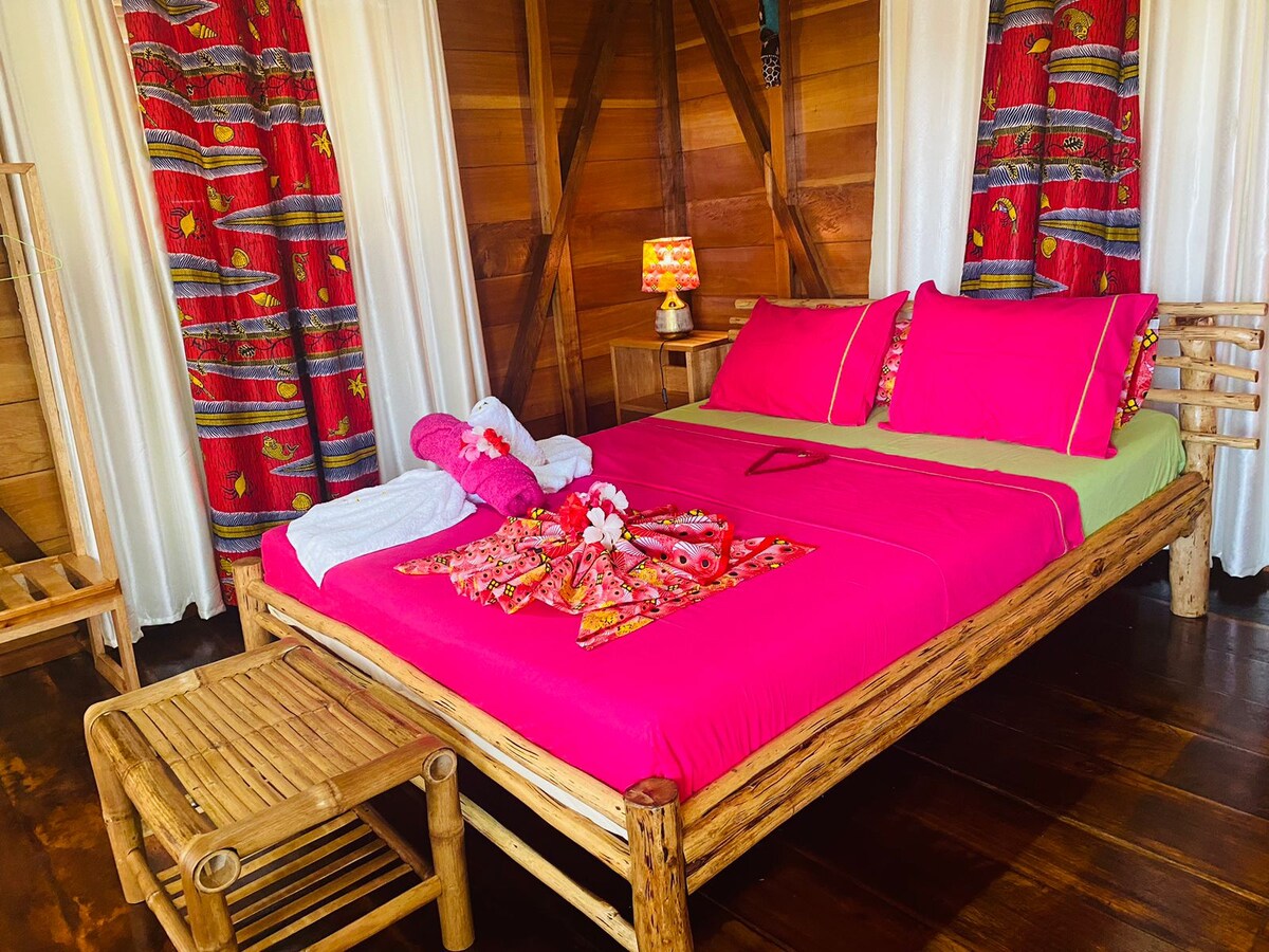 A special place right on Jalé Beach, one of the most beautiful and natural beaches on the island of São Tomé. Our bungalows excel in comfort and beach views, and offer the sound of the waves as company, ideal for one or several days. Our bungalow can accommodate 1 or 2 people (price shown is for 2 people; contact us for a personalized price). Breakfast and Wi-Fi are included in the price of the stay. The tourist tax is charged on site (2.10 euros per person per night).