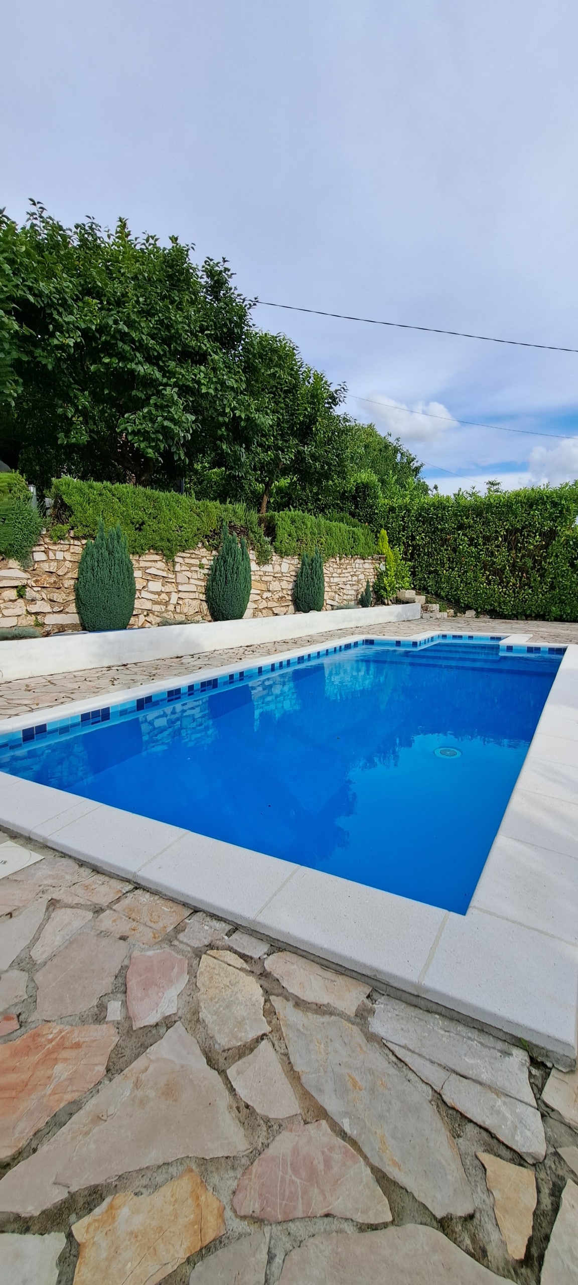 Lovely place for peaceful vacation located between Mostar and Blagaj. On 1st floor there is a kitchen, living room and comfortable bathroom with sofa for 2 person.Second floor is an open space bedroom with 2 beds. The most beautiful part is a terrace with 40 m2 ,there is a place for rest, a place for barbecue and an outdoor kitchen place. A private swimming pool with a pump for heating water is available to our guests from 01.05.-01.11.
