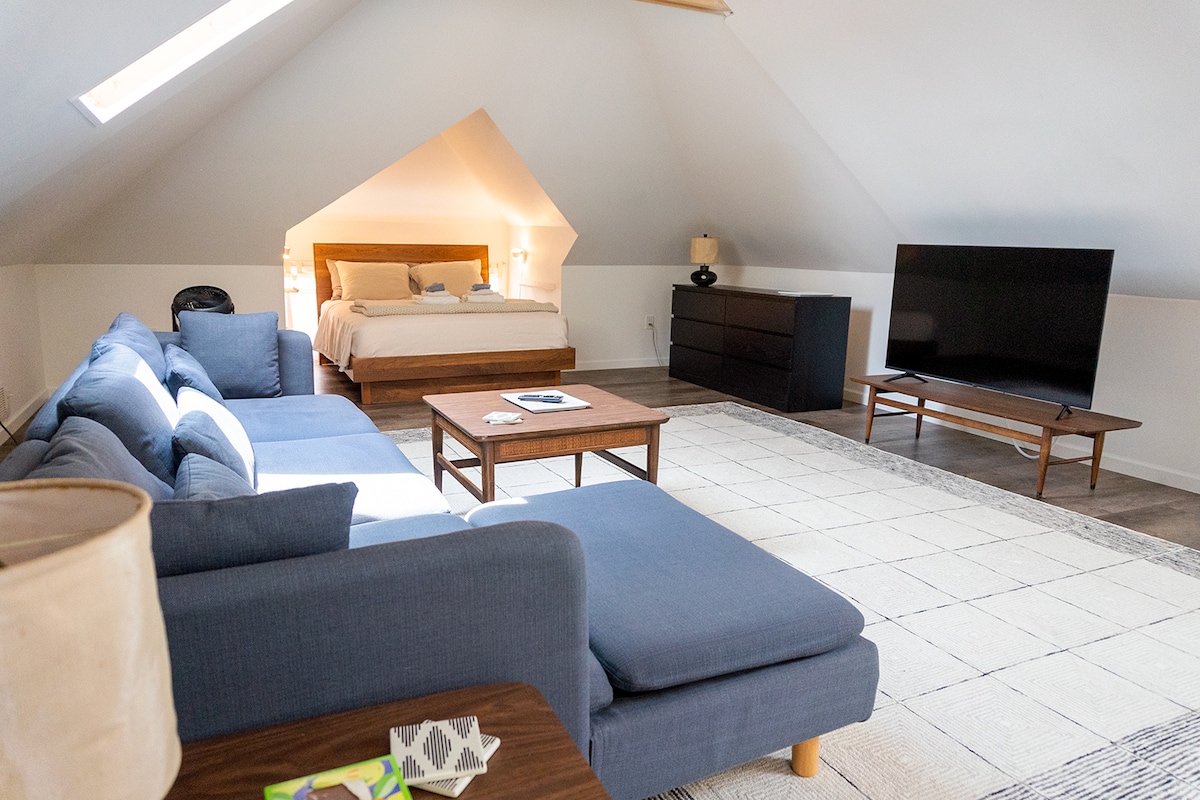 Kick back and relax in this calm, stylish space. You'll have a private space in a detached historic carriage house, sharing a yard with the host. We have a large yard with a patio near the carriage house, covered porch, grill, bbq pit, bocce court, and outdoor living room (summer). We have a dog that has yard access. Private, secured parking is available for 1 car. Families are welcome, as are pets. We recommend families 3+ contact us before booking to ensure the space will work for you.