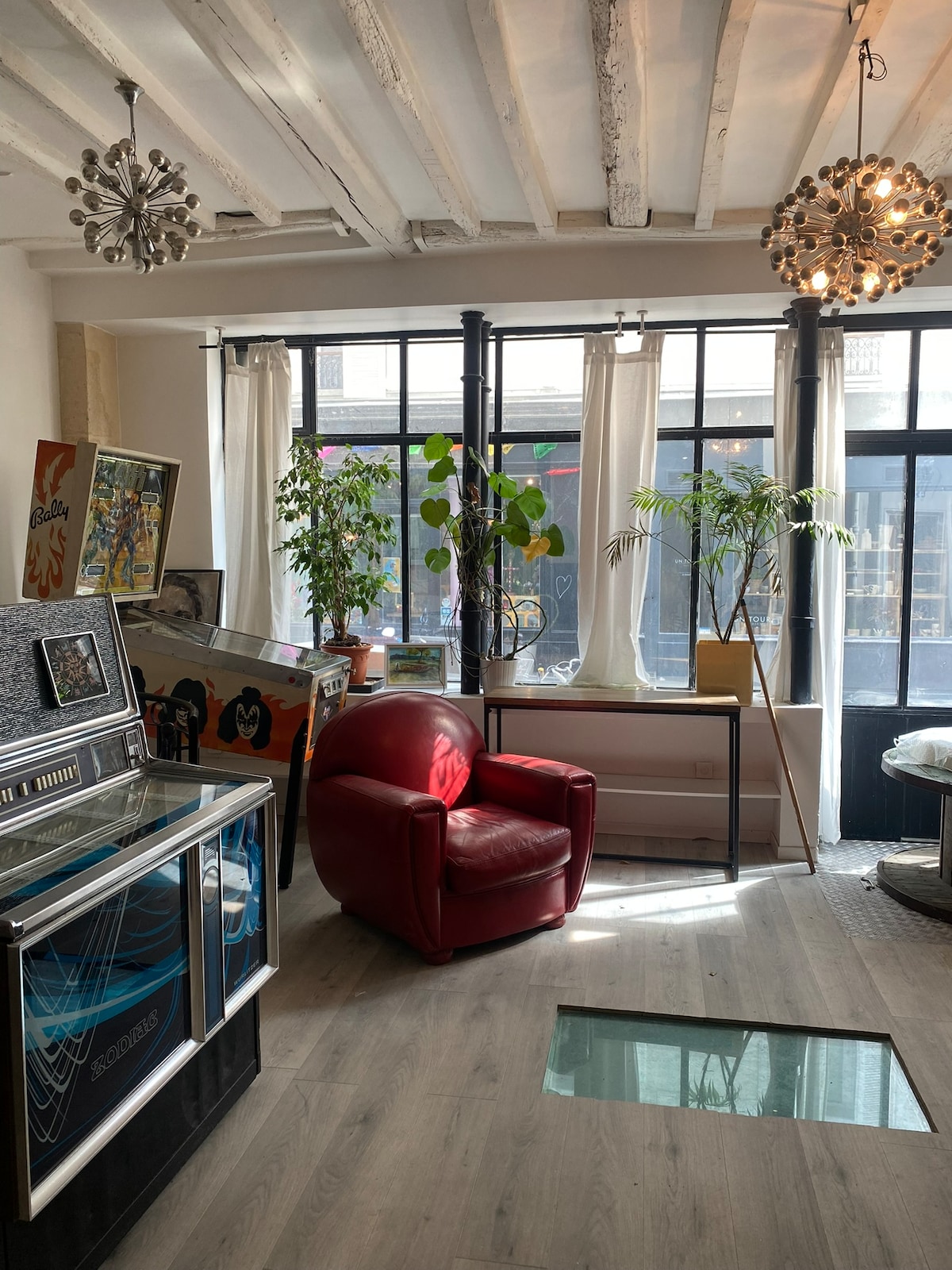 54 m² duplex apartment in the heart of Abbesses, Montmartre. Perfect for couples, friends or business travelers. On the 1st floor, day area with entrance, separate toilet, large living room with sofa bed, dining area and equipped kitchen. On the second floor, a double bedroom, bathroom with Italian shower, balneotherapy, double washbasin and toilet. The apartment is equipped with a washing machine, Nespresso machine, high-speed Wi-Fi connection and many other amenities for your comfort.