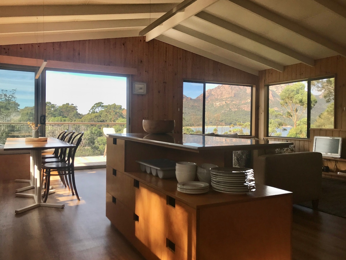 Aplite House is an architecturally designed, solar passive, and solar-powered home, built from Tasmanian materials and designed by the Hobart firm Dock 4. The 200-acre property is located at Friendly Beaches, between Bicheno and Coles Bay, and it borders the iconic Freycinet National Park on three sides. Inside, the house presents work by Tasmanian artists. Great care has been taken to showcase Tasmania.