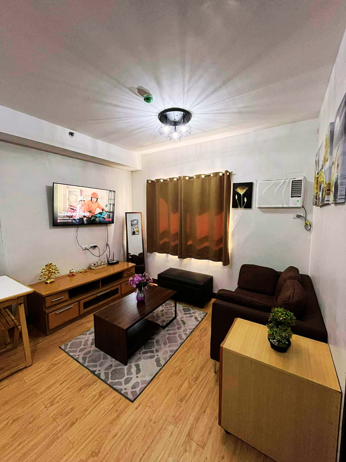 This 1Br condo unit is ideal for individuals, couples, and families or groups of 4. It offers 2 beds, a living room, balcony, dining and pantry area complete with kitchen/cooking appliances, utensils, refrigerator, and free drinking water supply. Other home and bathroom essentials are also available for your use.