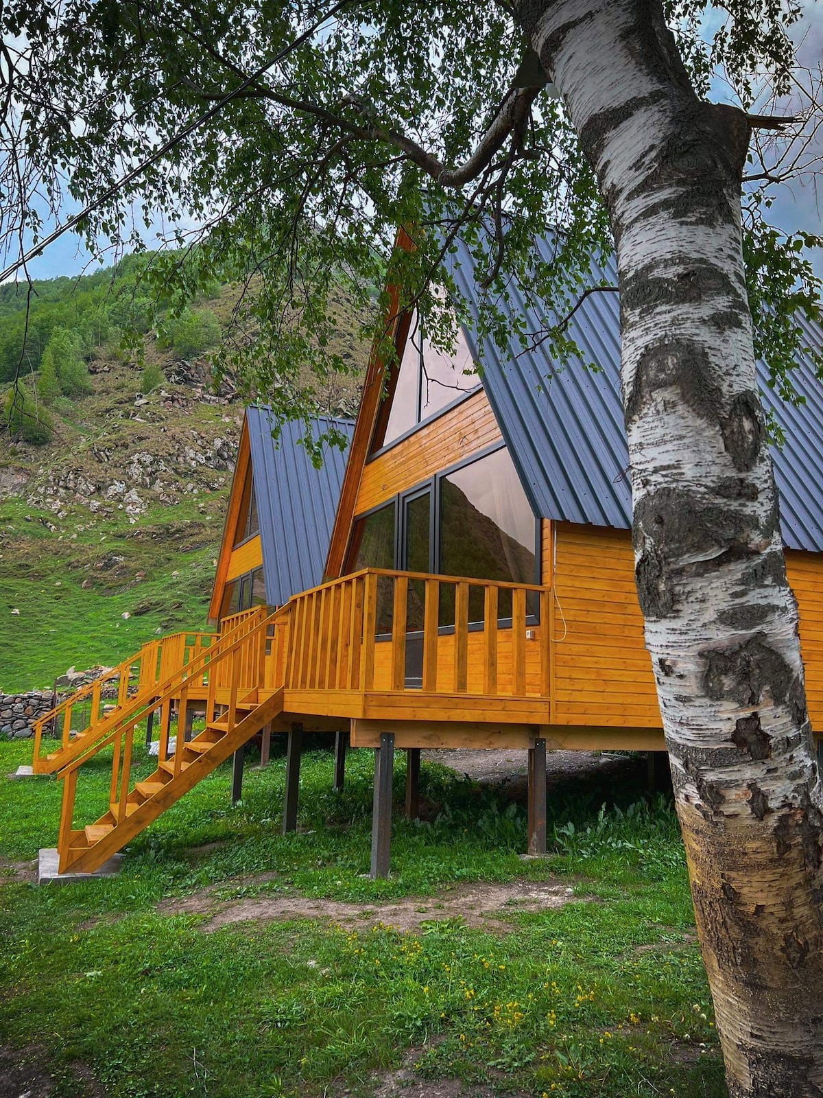 describtion Gabua Wooden Glamping is located in Gergeti village, Kazbegi Municipality, our Glamping has bedroom, private bathroom, kitchen, terrace, which has outdoor furniture, outdoor pool, free wifi and much more in the fairytale mountains. Stepantsminda center is 1.6 km from our accomodation. From our Glamping is hiking path to Sameba Trinity Church. There are two nearest airports, the first is Tbilisi International airport and the second is Vladikavkaz International airport.