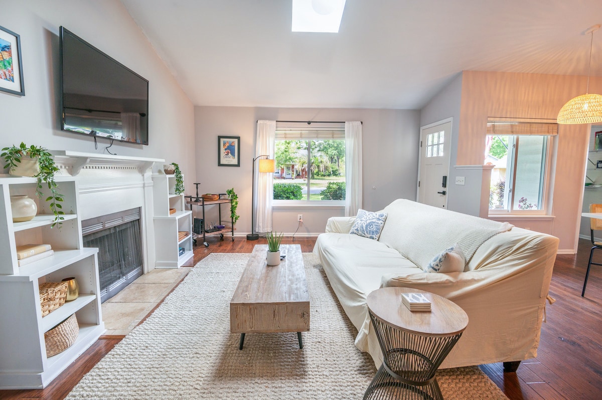Relax year round in this bright sunny space. Grill in the backyard and make s'mores in the fire pit! Cozy up to the fireplace. Fix a delicious meal in the fully equipped kitchen. Town of Mt. Pleasant Business license number: 20138090 STR Permit number: 250289 The house is in a traditional family neighborhood in south Mount Pleasant with tall trees and low traffic. Many great restaurants are at Shem Creek, with beaches, town center and Boone Hall Plantation within 15 minutes.