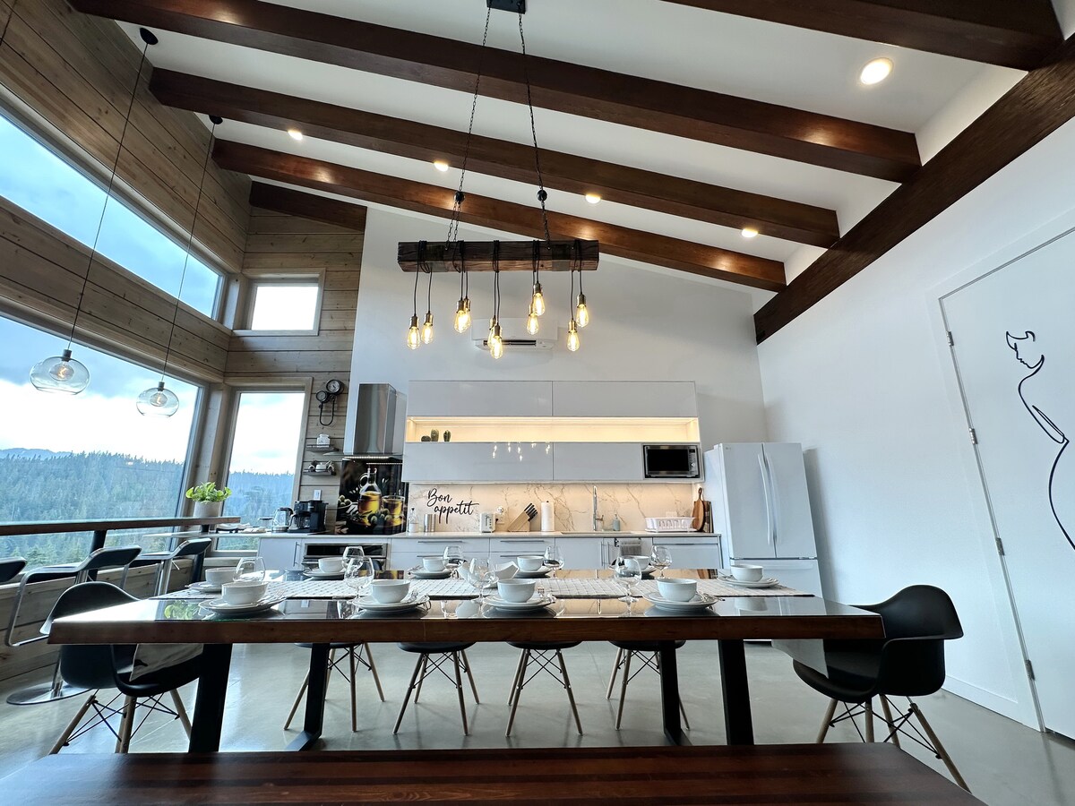 Have fun with the whole family in this stylish chalet. This brand new home has 4 bedrooms (two with ensuites) and 3 and a half bathrooms. The chalet is a 3 minute drive to ski parking and faces beautiful Strathcona Park. The main open concept living space has a fully equipped kitchen with induction stove, and bbq on the balcony. The living room has ample space to kick back with a large sectional, 65" television and stunning views. There is ample parking and indoor storage for all your gear.
