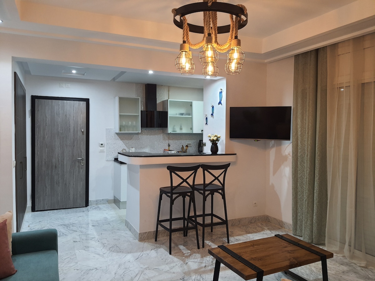 Peaceful and 📍centrally-located place. 5 minutes from the beach 🐟🐠🐙 well located close to shops, cafes, restaurants 🍔🍕🍟🍣🍱 The accommodation consists of 3 rooms, living room, well-equipped kitchen and modern bedroom. the cozy s+1 is finely decorated with light and practical furniture. Guest access guests have access to all the amenities available in the apartment.