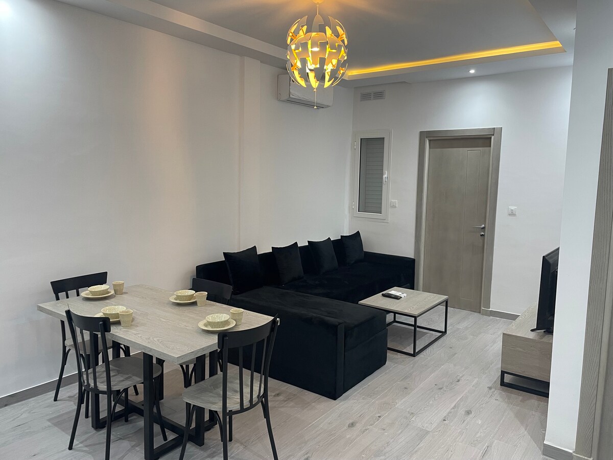 Enjoy a stylish experience at this centrally-located place. Located in a brand new residence and walking distance from Calypso night club and the best beach bars in Hammamet. Our lovely 1 bedroom Apartment is fully equipped, has Air conditioning, modern furniture and a shared pool to make your trip to Hammamet unforgettable !