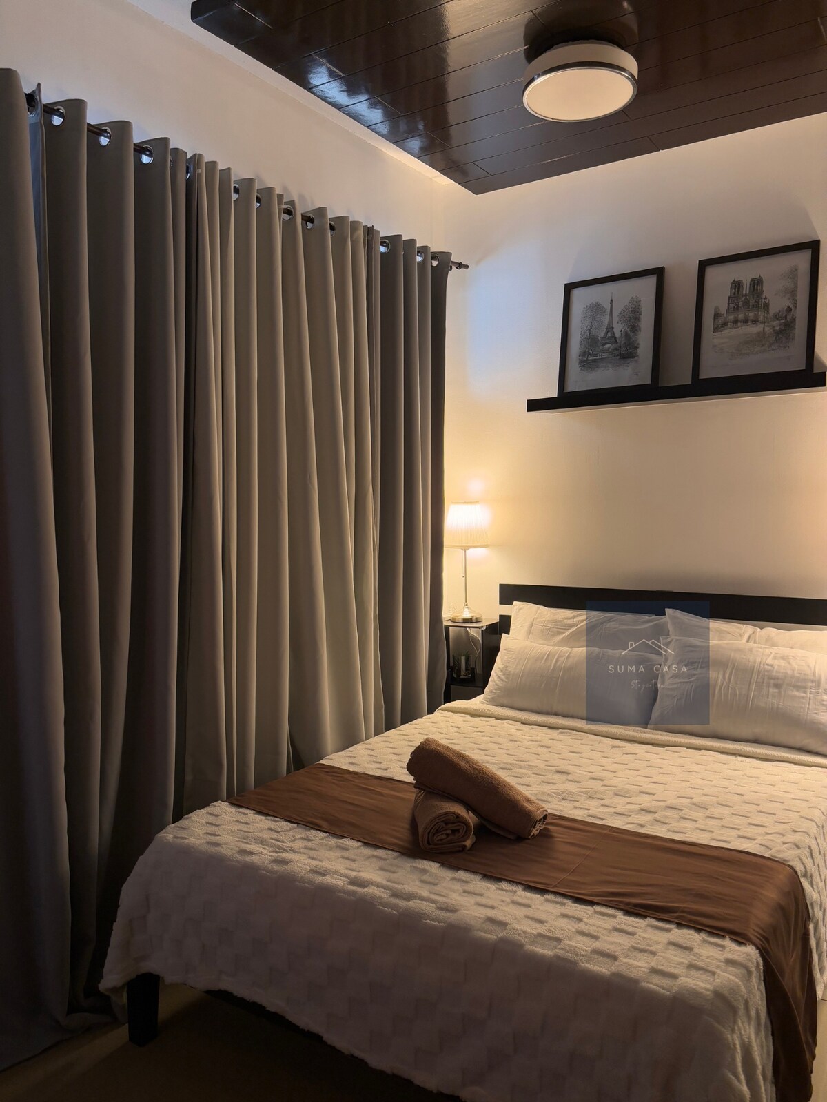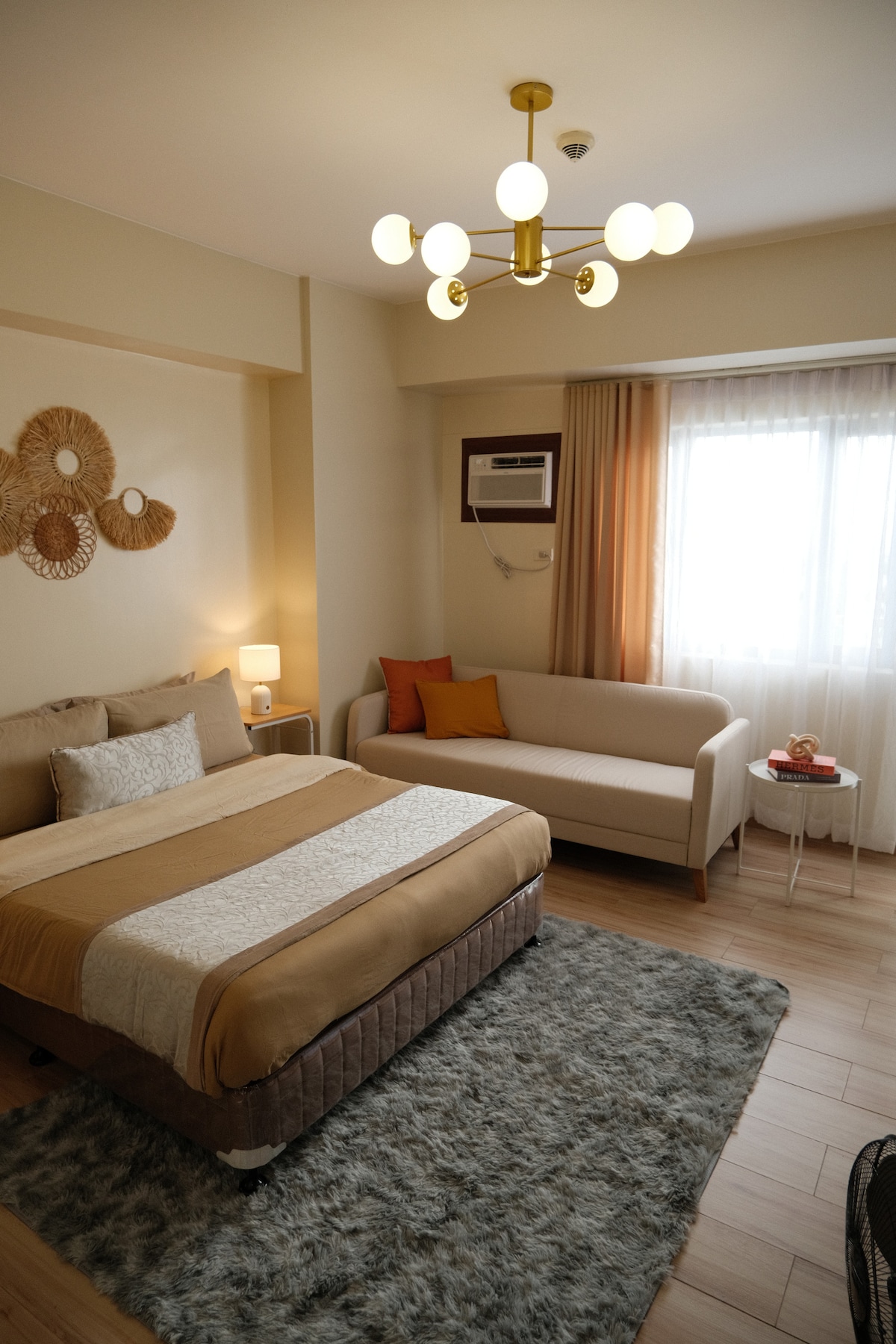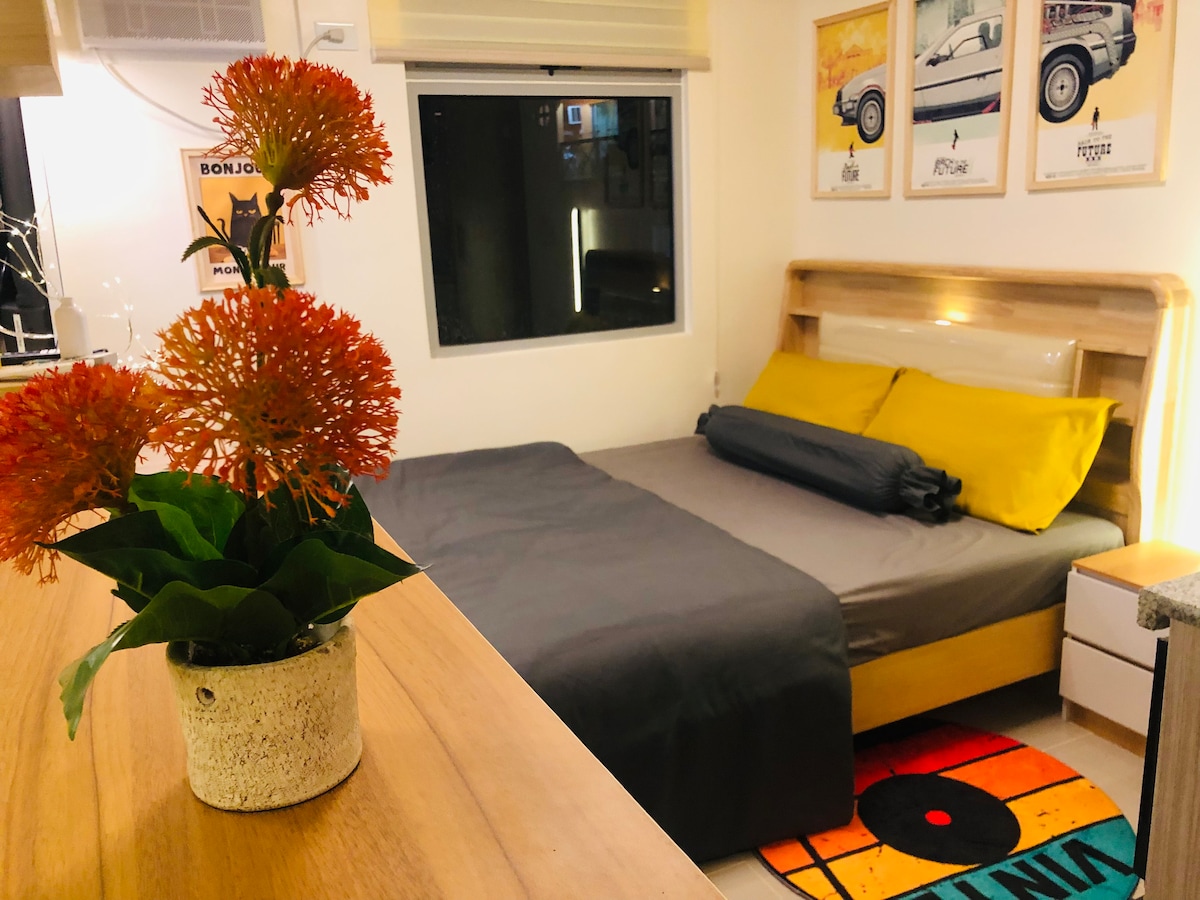 Imagine your 5 minute walk home from a concert at Araneta Coliseum or New Frontier Theatre. Art in Island, Bellini's, Habanero Cubao Expo are definitely walkable distance from the condo. Get your seafood fix at Dampa after a swim in the pool or shopping at Gateway Mall. Equipped with both task and mood lighting, the unit is great for work from home and staycations. The stay includes same building access to parking, pool, gym, billiard table, jogging trail, basketball court and 24/7 security.