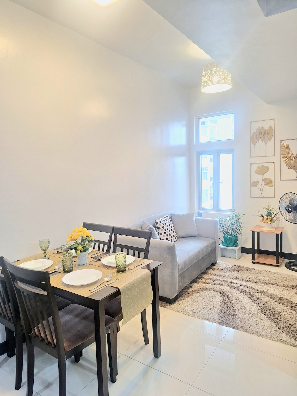 Welcome to our cozy and convenient condo unit overlooking the iconic Araneta Coliseum! Making it the perfect choice for those attending events or concerts there. The minimalist interior creates a tranquil atmosphere, offering a serene retreat from the city's hustle and bustle. Additionally, you can enjoy leisurely walks and take photos in the beautiful garden located on the 4th floor, adding a touch of nature to your stay.