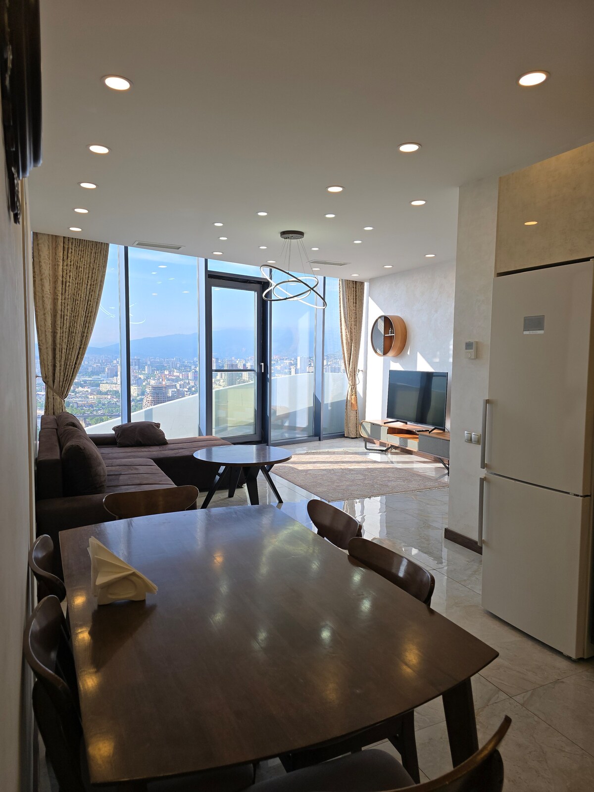 The apartment that you are guaranteed to love! Discover comfort and luxury in this centrally located 20th-floor apartment in Tbilisi. Enjoy panoramic views from both your bed and living area. With premium amenities and additional services within the complex, your stay is sure to be unforgettable. **Please keep in mind that access to the pool and the fitness club is only possible by paying the Axis Towers Wellness Center membership fee.**