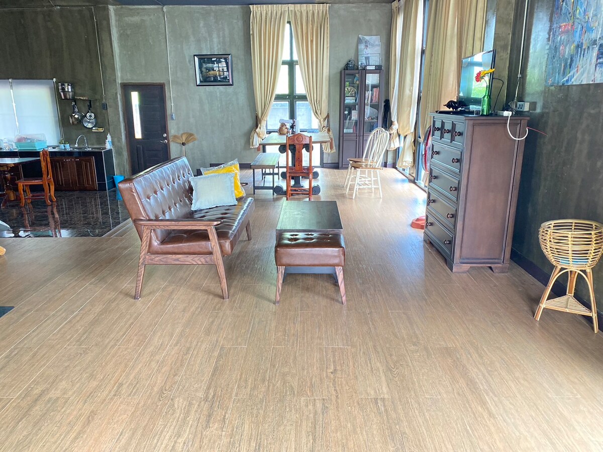 บ้านอยู่กลางเมือง มี 3 ห้องนอน 3 ห้องน้ำ 1 ห้องโถง(มีแอร์ทุกห้อง) 1 ห้องครัวกับระเบียงสำหรับชมวิวแม่น้ำโขงและรับประทานอาหารที่ระเบียงรับแสงตะวันตอนเช้า สามารถตักบาตรในตอนเช้าและออกกำลังกายทั้งเช้าและเย็น บ้านห่างจากลานพญาศรีสัตนาคราชเพียง 500 เมตร ใกล้โลตัสโกเฟรช สะดวกสบายมีทั้งร้านอาหารร้านกาแฟโดยรอบ ใกล้ตลาดถนนคนเดินในช่วง วันศุกร์-เสาร์-อาทิตย์