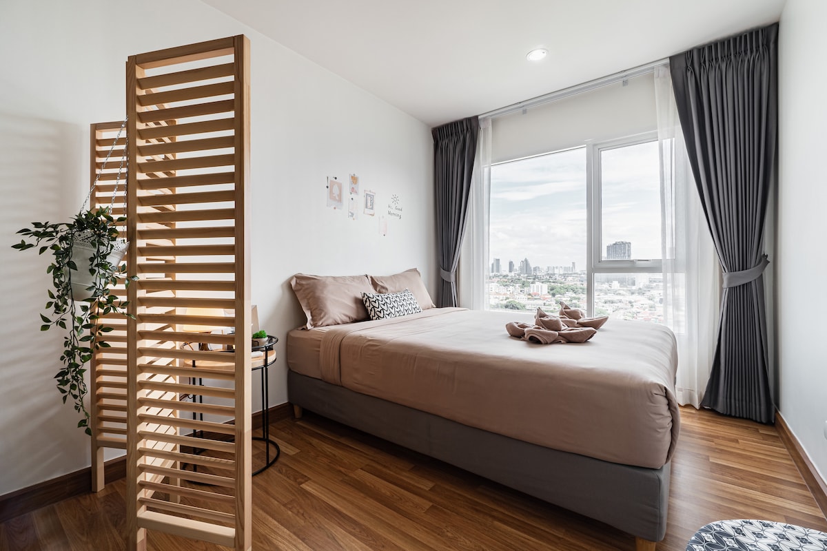 Cozy 1 BR/King bed/Netflix Near@MRT Purple Line