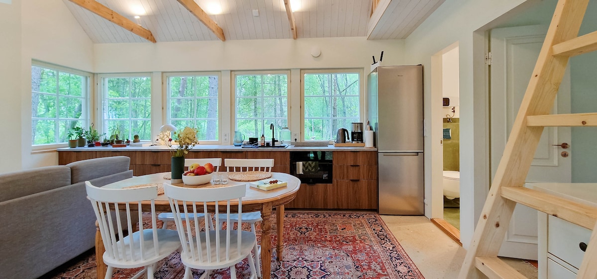 Lovely one-bedroom house with extraordinary privacy, huge garden and artsy design (made by me), yet located in the very heart of the village. Public transport stop and grocery store right across the street. Great resting place for couples, solo adventurers, families with kids and/or furry friends (pets). It is also good place to stay and take a daytrips to Saaremaa, Pärnu, Haapsalu or Tallinn. As I do live here sometimes it’s not hotel style, so don’t prepare for that.