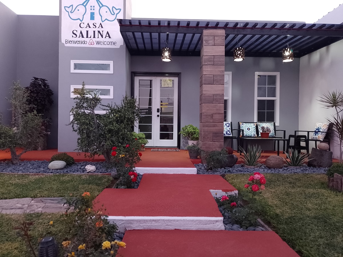 Casa 🏡 Salina, solo tenemos un propósito, dar el confort, limpieza, seguridad y tranquilidad a nuestros huéspedes, además de contar con un amplio garage de 14x4.5mts para la seguridad de tus vehículos. siéntete cómo en tu propia Casa, en familia o amigos y después de un largo viaje un merecido descanso. Nos ubicamos a una cuadra del bulevar principal, muy cerca de gasolineras, Oxxo, restaurantes, lavandería, farmacia, tiendas de autoservicio etc. Nota: podemos facturar