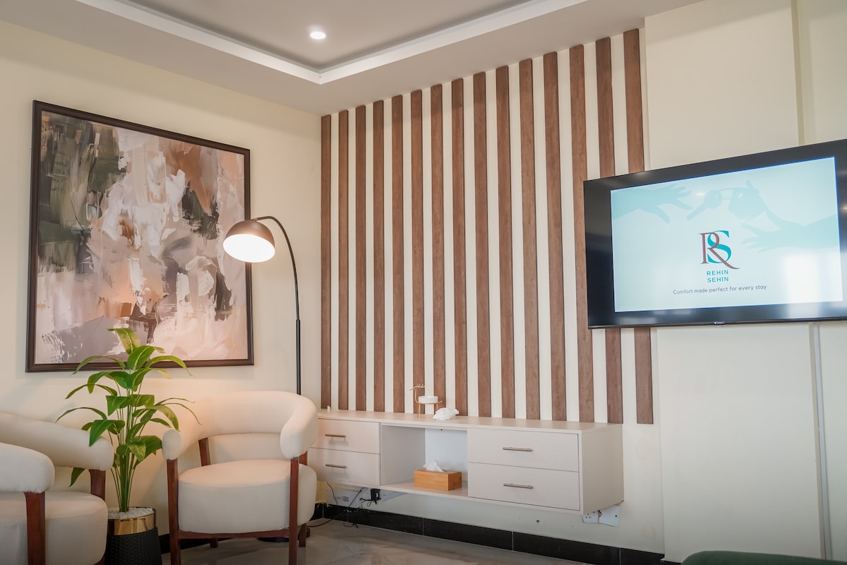 Step inside Flamingo Grand 3 bedroom apartments, the most sophisticated and aesthetically exciting service apartments in Islamabad. Enjoy a safe, secure and stylish experience at this centrally-located place. Whether you are visiting Islamabad for pleasure or for work, we at flamingo assure to provide you with a 5 star experience. Guests also enjoy a dedicated free and secure parking spot, free wifi and experience viewing their favourite tv series on the 65 inch smart led.
