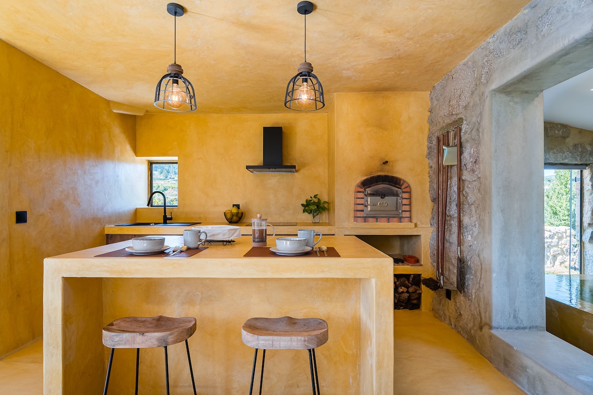 Javalina is a romantic stone house surrounded by nature and lots of fresh air. Start your day with a delicious breakfast while the birds are singing, relax in the afternoon with a book in the shade of a large tree, and end your evening with a glass of wine and deep conversations. The unique saltwater pool, framed by magnificent trees, offers breathtaking views of the Douro Valley, and the outdoor bathtub invites you to enjoy cosy moments all year round.