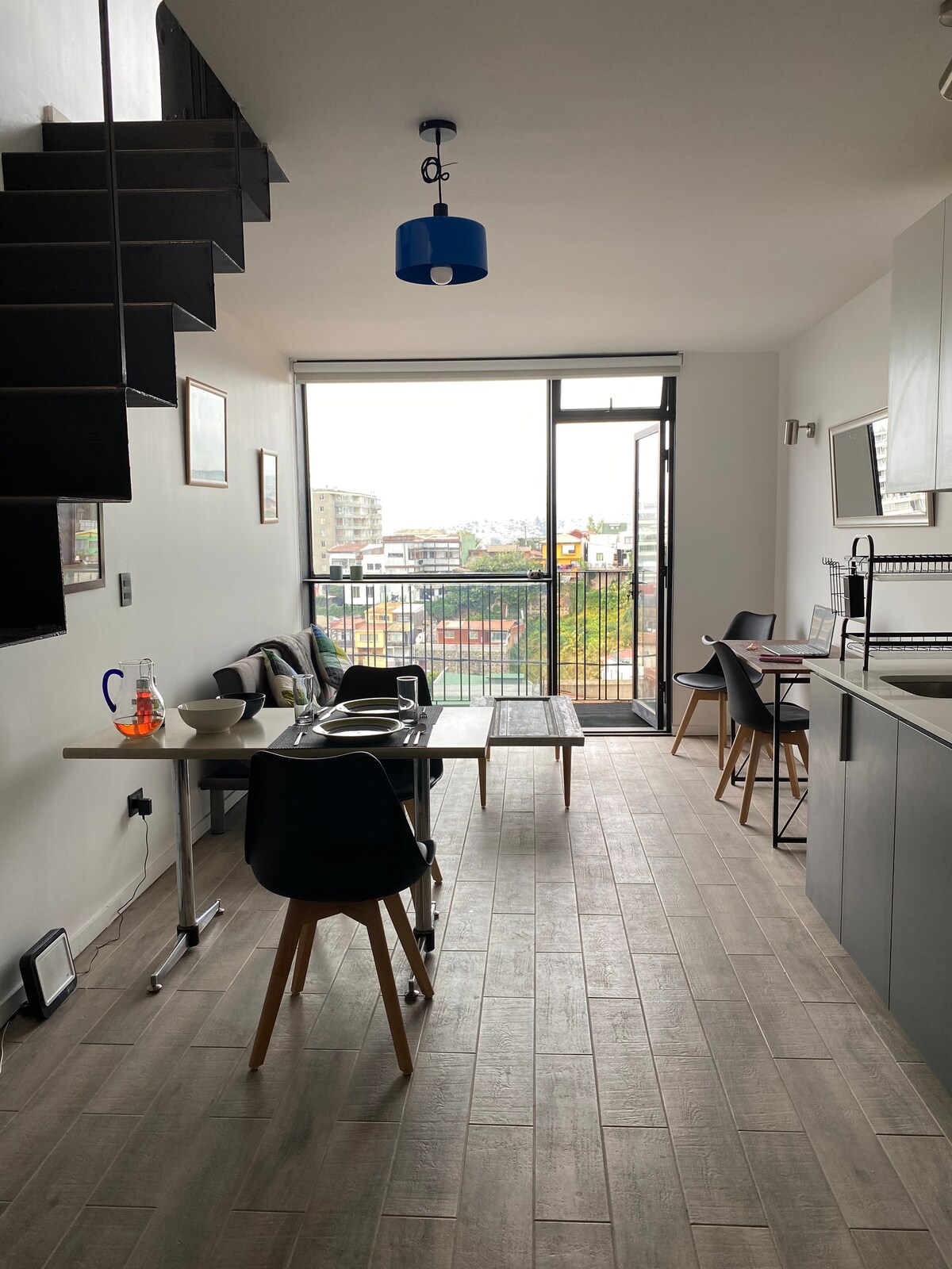 Comfortable, cozy, spacious and bright loft. It has a terrace and a partial view of the bay. It is designed for people to relax and enjoy the space with fullness and intimacy. Located 100 meters from the civic center of Valparaíso, where there are shops and easily accessible transportation. It is a 10-minute walk to the Bellavista metro station, a 7-minute walk to the foot of Cerro Alegre and Concepción, and a 2-minute walk to the foot of Cerro Bellavista.