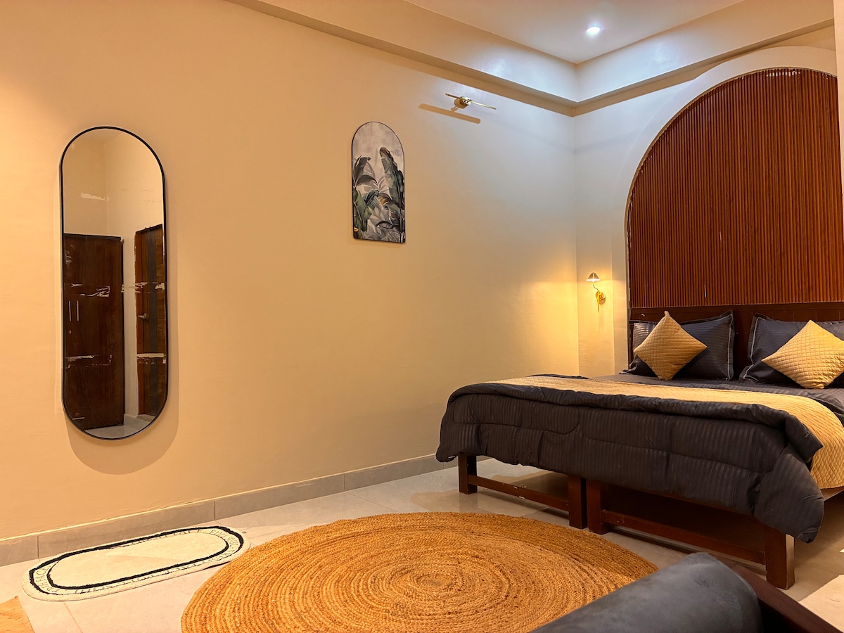"Welcome to our tastefully curated homestay, where comfort meets style. Adorned with elegant panels, ambient studio lights, and a 55-inch TV, our space is designed for groups to unwind and relax peacefully. Please note, to ensure a peaceful environment for all guests, we kindly request lowering music by 10:30 PM, and we appreciate your understanding in refraining from loud noises thereafter.
