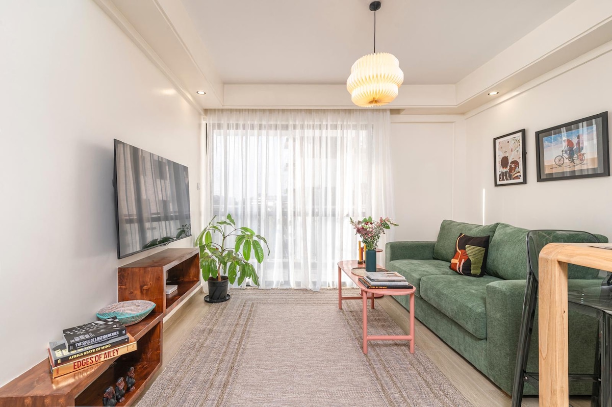 Experience a 12th floor artistic haven, a newly built unique Bohemian Home in the center of Kilimani. You’ll be just a walking distance away from Yaya shopping center, food spots & many other places worth checking out. You will luxuriate in a comfort cozy king bed, with intentionally curated furnishings surrounded with artworks,Art books and natural plants. You will also enjoy your private balcony access, fast wifi, work space, fully equipped kitchen, free Netflix, gym, and more . Book today!