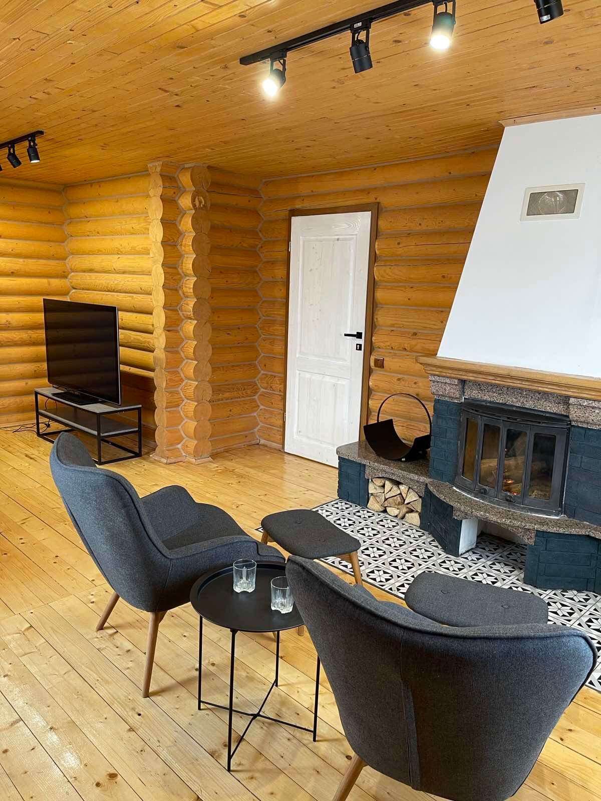Комфортний дерев’яний будинок в Карпатах, поруч з гірськолижним курортом Буковель. Окремостоячий зруб ручної рубки, простора тераса з чудовим видом на вершини гір Говерла, Петрос, Близниці… Купель з джакузі на відкритому повітрі на нашій терасі- краща заміна сауни. Камін на дрова, теплі підлоги в санузлах, повноцінна кухня з необходною технікою та посудом. На вулиці мангал для приготування страв на вогні. А найголовніше - незабутня атмосфера, усамітнення, краса та комфорт.