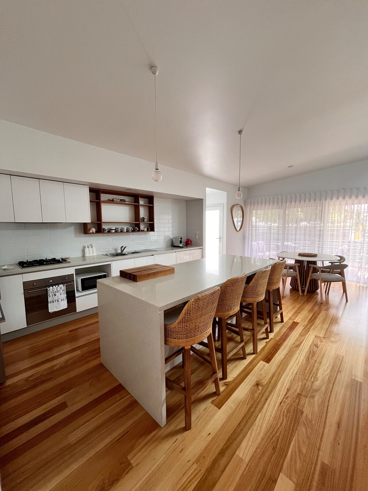 Barefoot at Callala Beach offers you absolute beachfront architect designed 2 bedrooms (main with expansive water views) open plan living & modern kitchen beach cottage with direct private access to Callala Beach with all the luxuries and modern touches to spoil you and your furry friend. It's a perfect getaway for family of 4 or a couple seeking the ultimate in both relaxation and style. There is a resident pod of dolphins outside on the calm waters of Jervis Bay so you can swim out to them!