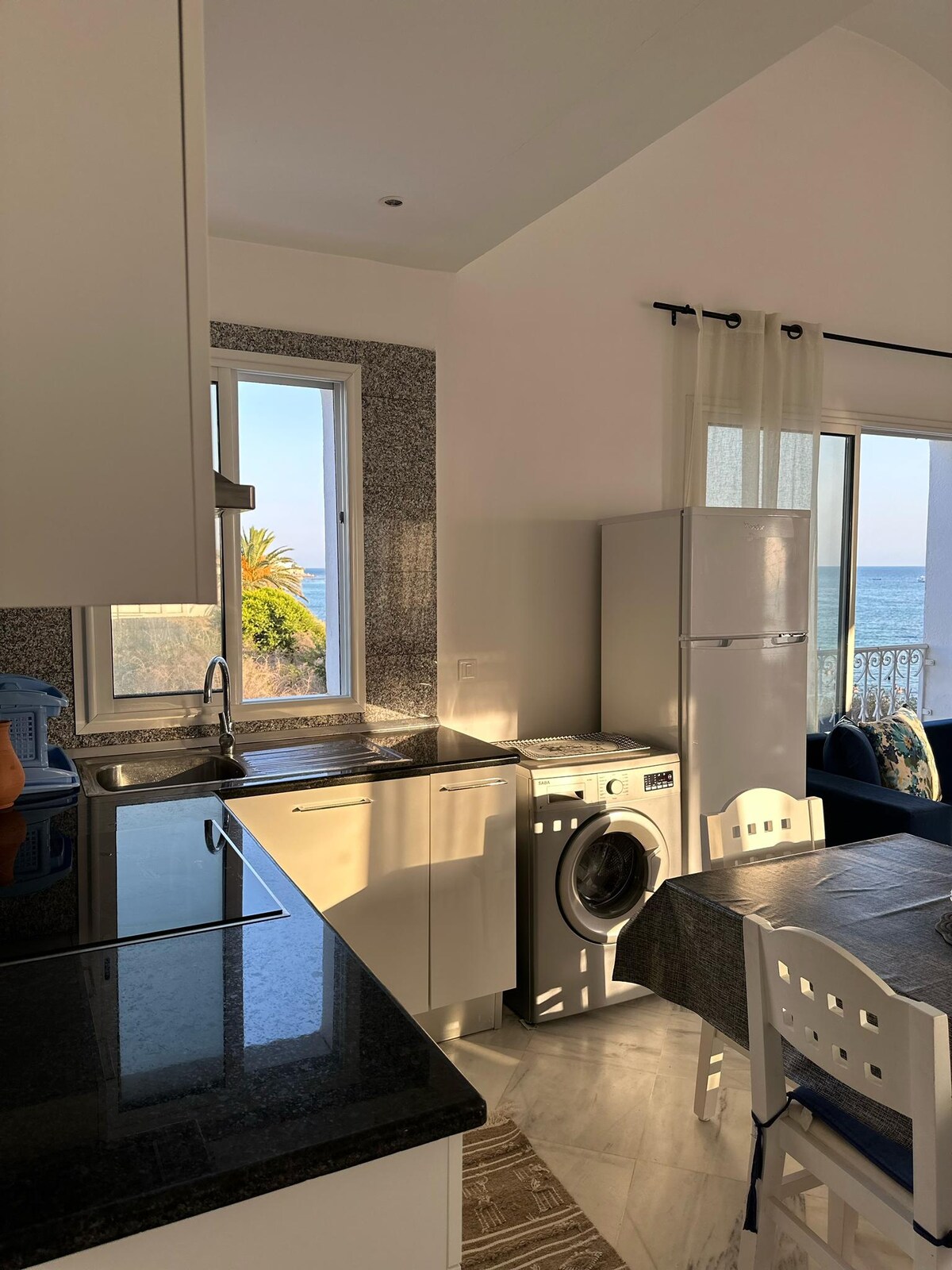 Step into our charming and peaceful seaside apartment nestled in the vibrant heart of Hammamet! Wake up to breathtaking views of the sparkling sea and the majestic Hammamet fort right outside your window. Immerse yourself in the convenience of our central location, where shops, delightful eateries, and cozy cafés beckon just moments away. Your perfect coastal retreat awaits!