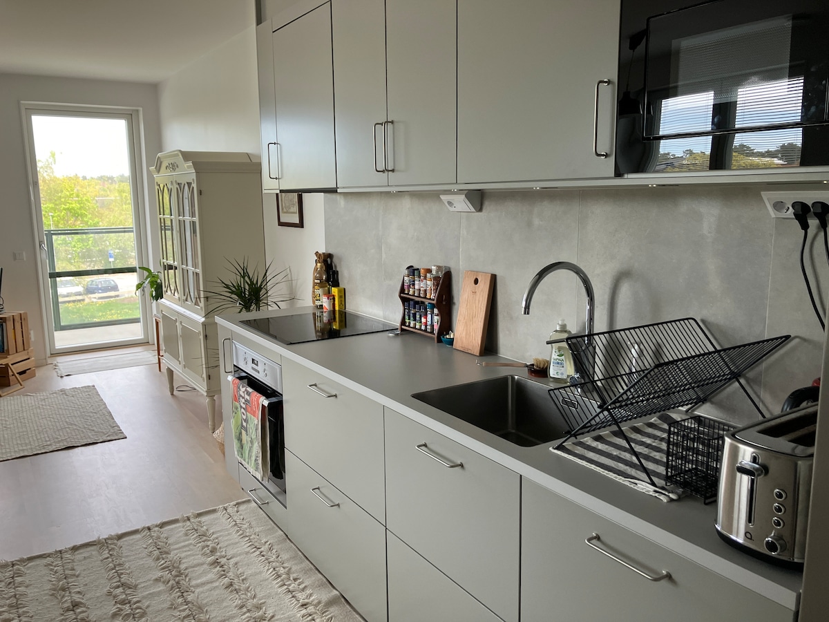 Welcome to a newly-built and fresh apartment. In the apartment you will find all the amenities you need. With us, sheets are always included in freshly made beds when you arrive. Here you can relax in a quiet environment but still be close to the pulse of the city. We as hosts are available to the greatest extent possible to make your stay the best possible. Free parking included. Good to know for longer stays is that the place does not have a washing machine.