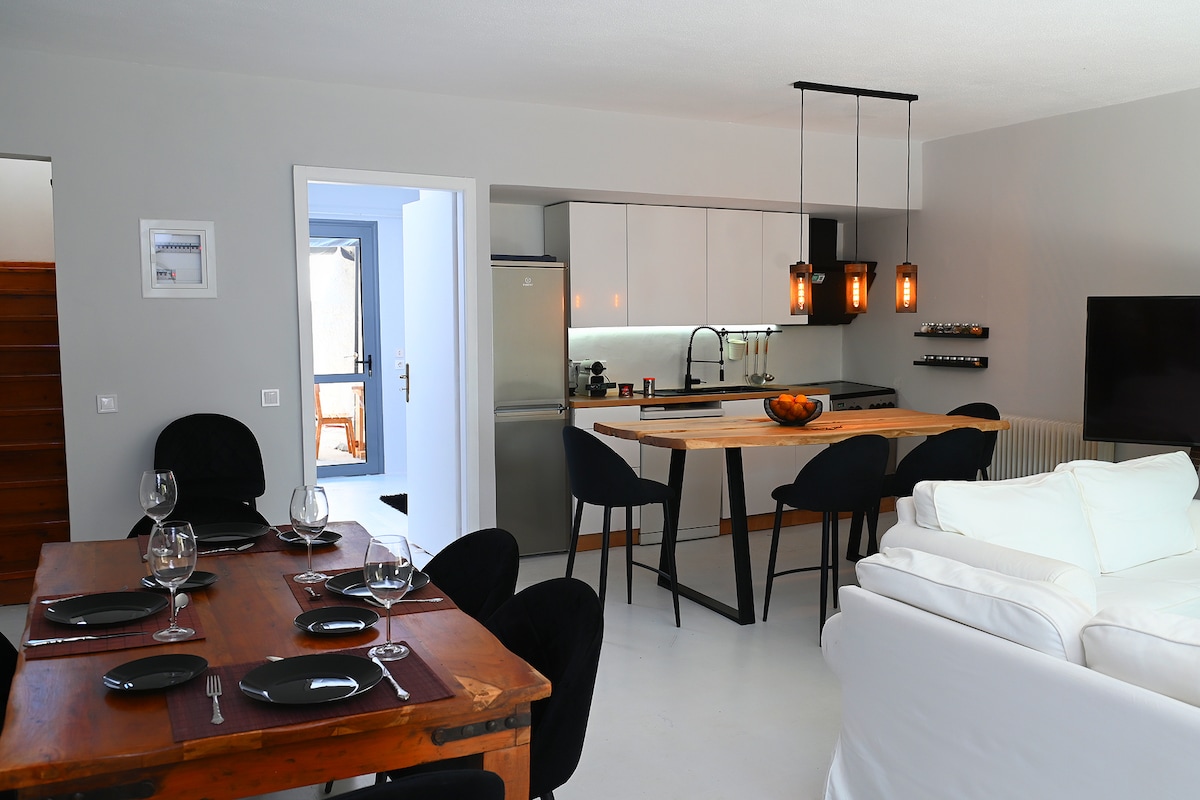Right on the sea! breathtaking view! Well furnished and decorated 2 bedroom home. Fully enclosed private garden overlooking the sea. «Private » little beach, rocks for climbing and even a cave! In a quiet area just outside the town. (5min walk)