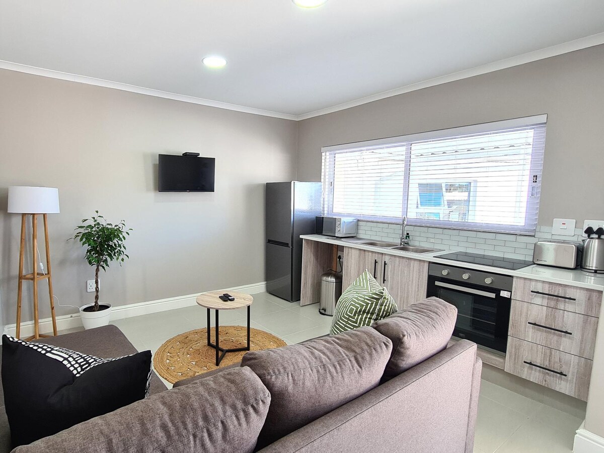 Escape to a serene oasis! Charming 1-BR garden flat in Dorchester Heights. Private entrance & parking for 2 cars. Relax in the large garden with BBQ grill & outdoor table. Enjoy DSTV, Netflix, WiFi & emergency lights. 2km to Hemingways Casino & Mall. Pet-friendly (on request). Self-check-in. Hosts nearby but respect your privacy. Perfect for 2 guests. Book now!