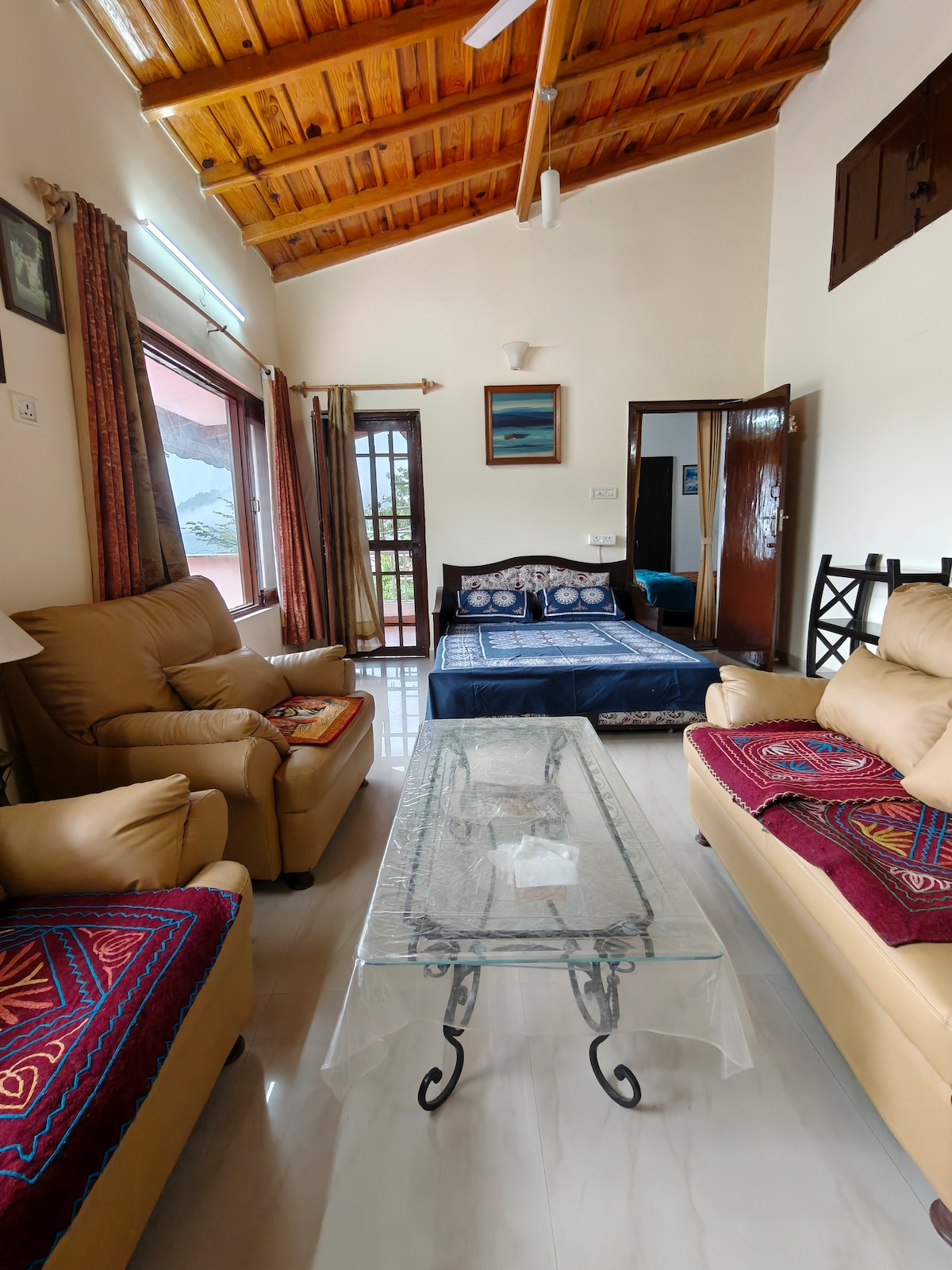 Wake up to crisp mountain air and sweeping hill views in this enchanting 1-BHK apartment. Sunlit living space, kitchenette, dining space, plush bedding, and a private balcony create a serene sanctuary to relax, reflect, and soak in nature. Thoughtful touches, cozy corners, and lush surroundings turn every moment into a sensory escape- perfect for couples, solo travelers, or small families seeking a peaceful, unforgettable mountain retreat.