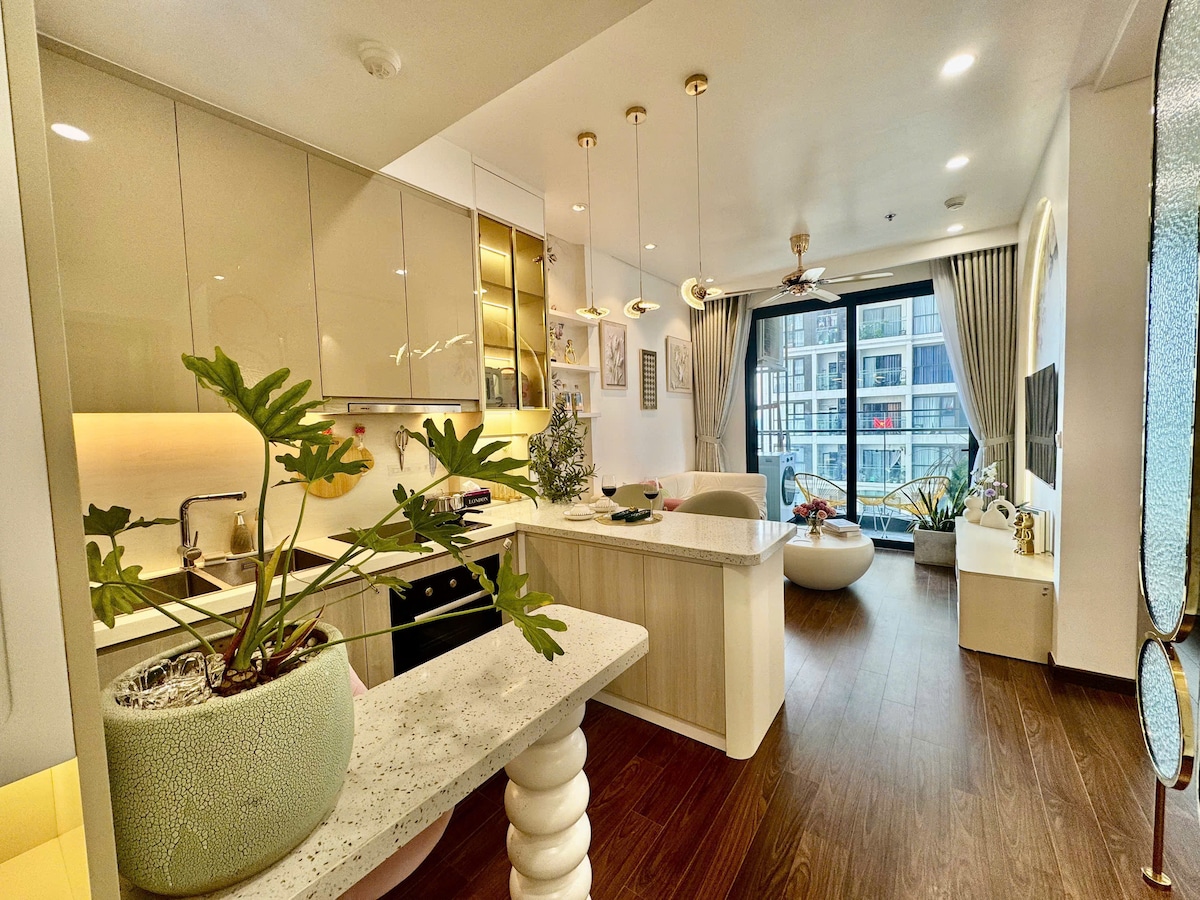 Chào mừng bạn đến với căn hộ 2 phòng ngủ "Luxury Retreat" tại trái tim Vinhomes Smart City. Đây không chỉ là một căn hộ mới, mà là nơi tôi đã dành trọn tâm huyết để chăm chút từng góc nhỏ, mong muốn mang đến cho bạn một kỳ nghỉ thư thái và đẳng cấp nhất. Sự đón tiếp nồng hậu: Đội ngũ lễ tân và nhân viên mở cửa luôn mỉm cười chào đón bạn với phong cách lịch lãm của khách sạn 5 sao hạng A.