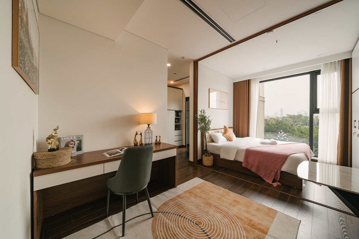 Staying here, you’ll enjoy access to outstanding facilities: a breathtaking infinity pool, a 4-season heated swimming pool, a scenic walking lake, and a fully equipped gym. The neighborhood is vibrant yet peaceful, making it perfect for both business and leisure travelers. Location is unbeatable – only minutes away from Mỹ Đình Stadium, the National Convention Center, and administrative hubs of Mỹ Đình and Thanh Xuân.