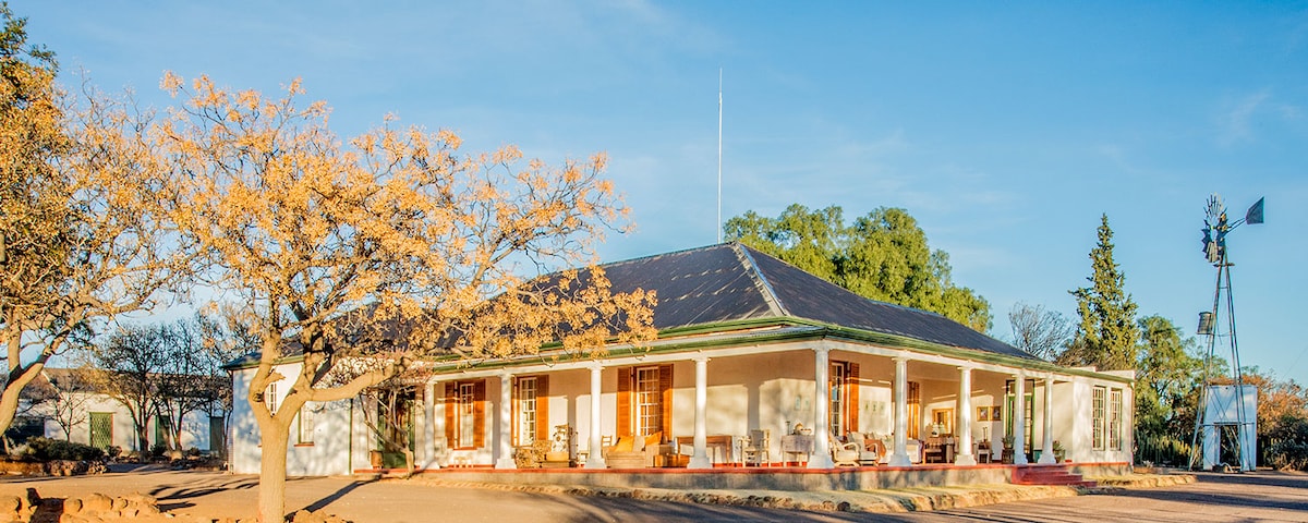 Stay in a spacious, pet-friendly 1930s farmhouse on our family-run wine estate in the Green Kalahari. Perfect for families, groups, and longer stays seeking privacy, comfort, and sweeping vineyard views. Relax on the large stoep, explore the estate, cool off in the natural dam, and meet our friendly farm dogs. Enjoy self-catering convenience with easy access to the Garden Café and Tasting Room. Your stay includes a complimentary tasting of our award-winning wines, brandies, and liqueurs.