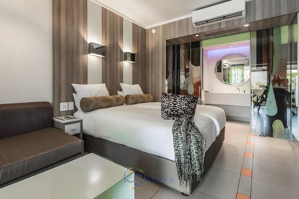 - Charming, clean, and budget-friendly place. - The Alex La Villa Petite measures 9.2m² & is an extension of the family (Stanley Suite) room. - It is relatively small but very cozy & suitable for parents traveling with their little ones, or on a budget & wanting to crash for a short stay. - AC in the room and own shower and toilet.- Outdoor restaurant overlooking the pool. - Backup solar ensures lights and wifi are always available.