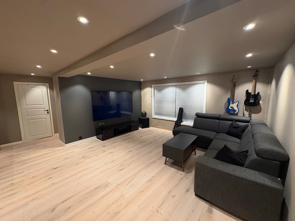 Apartment with 1 bedroom with double bed, and sofa bed for 2 people in living room. Heating cables in all floors. Smart TV. Private entrance. Central location in quiet residential area. Walking distance to hiking terrain, ski slope, city center and beach. 7 min walk to grocery store or hospital. Playground and outdoor area right by the apartment.