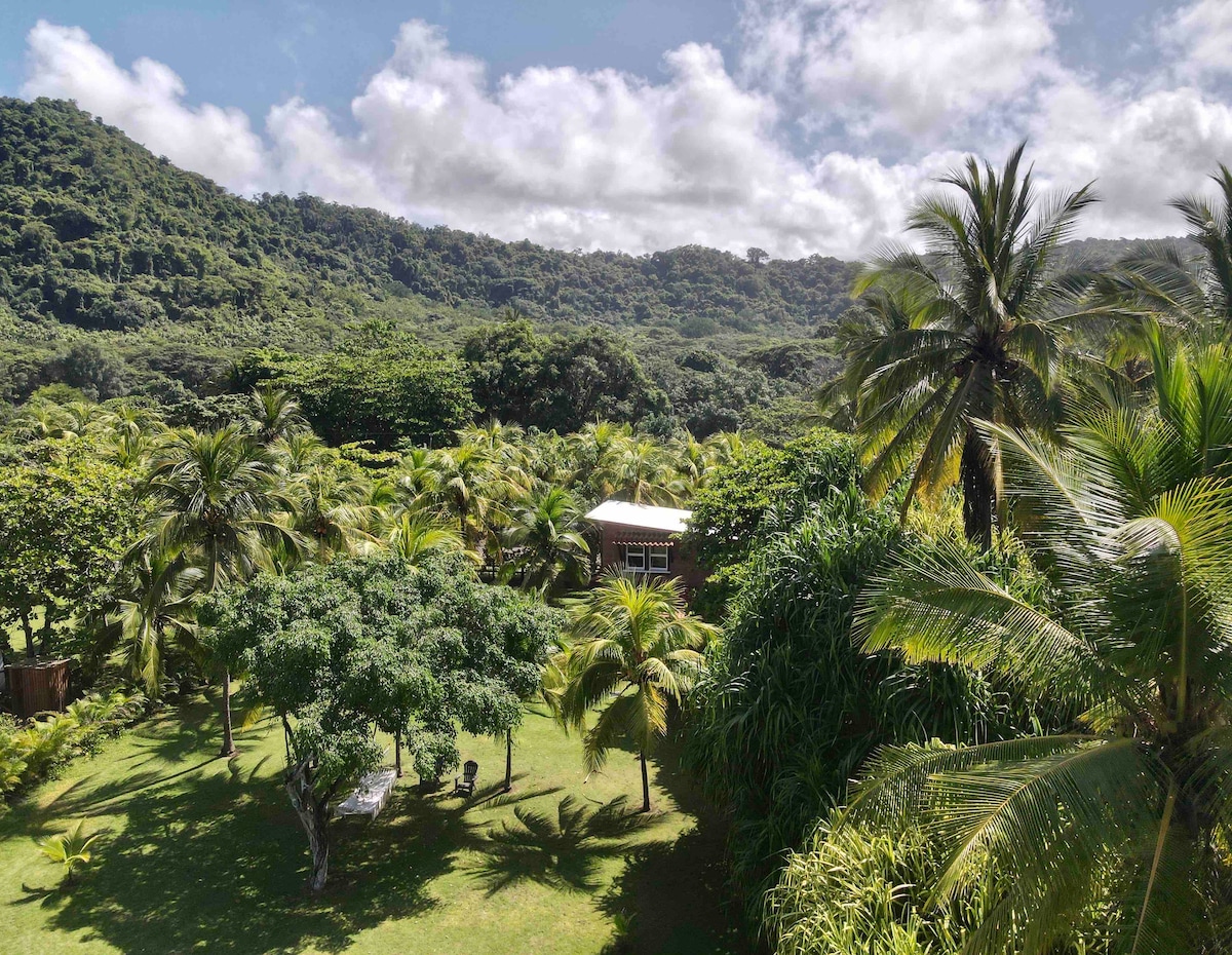 BEACH FRONT! AC everywhere. 2 bdr + Pool! IMPORTANT NOTE : ongoing construction at neighbors until April! 2026 Prices show 25% off for any inconvenience! Cutest little beach house on a gorgeous palm tree lawn, FRONT ROW beach Playa San Miguel. Beautiful tropical views from every window & deck. House 110m2 (1200ft), 2 stories. Downstairs living room, kitchen, toilet. Upstairs 1 bdr wood floors, king bed, desk, closet + bathroom. To side of main house is 2nd bdr, queen bed, desk + full bath.
