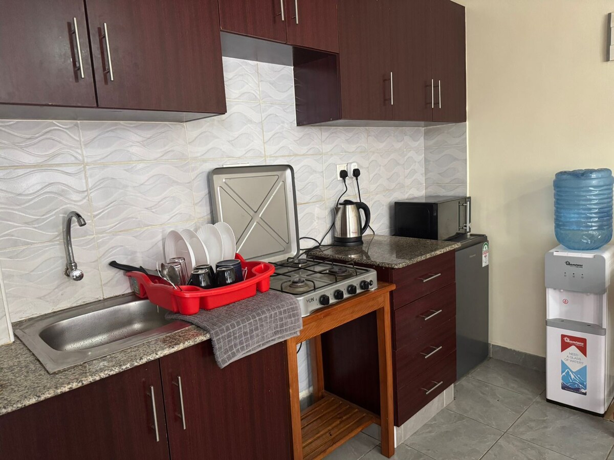 Kick back and relax in this calm, stylish space. 1 bedroom fully apartment located in Milimani kisumu 4 mins drive from kisumu CBD, close proximity to social amenities and shopping malls. There's ample parking, wifi, fully equipped kitchen with modern facilities, Netflix, smart TV