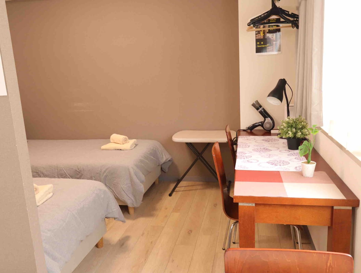 Please read everything. It is located in the center of Namba, so it is easy to go anywhere. You can walk to Kuromon Market, America-mura, Shinsaibashi, Namba Parks, Namba city, Otaku Road, and Denden Town. From Nihonbashi Station, there is no need to transfer trains to Kyoto or Nara. There is no elevator, so you need to climb the stairs to the 4th floor. If you specify a time, the staff will come to help. It is self check-in, but I am nearby, so please contact me immediately if you need me.