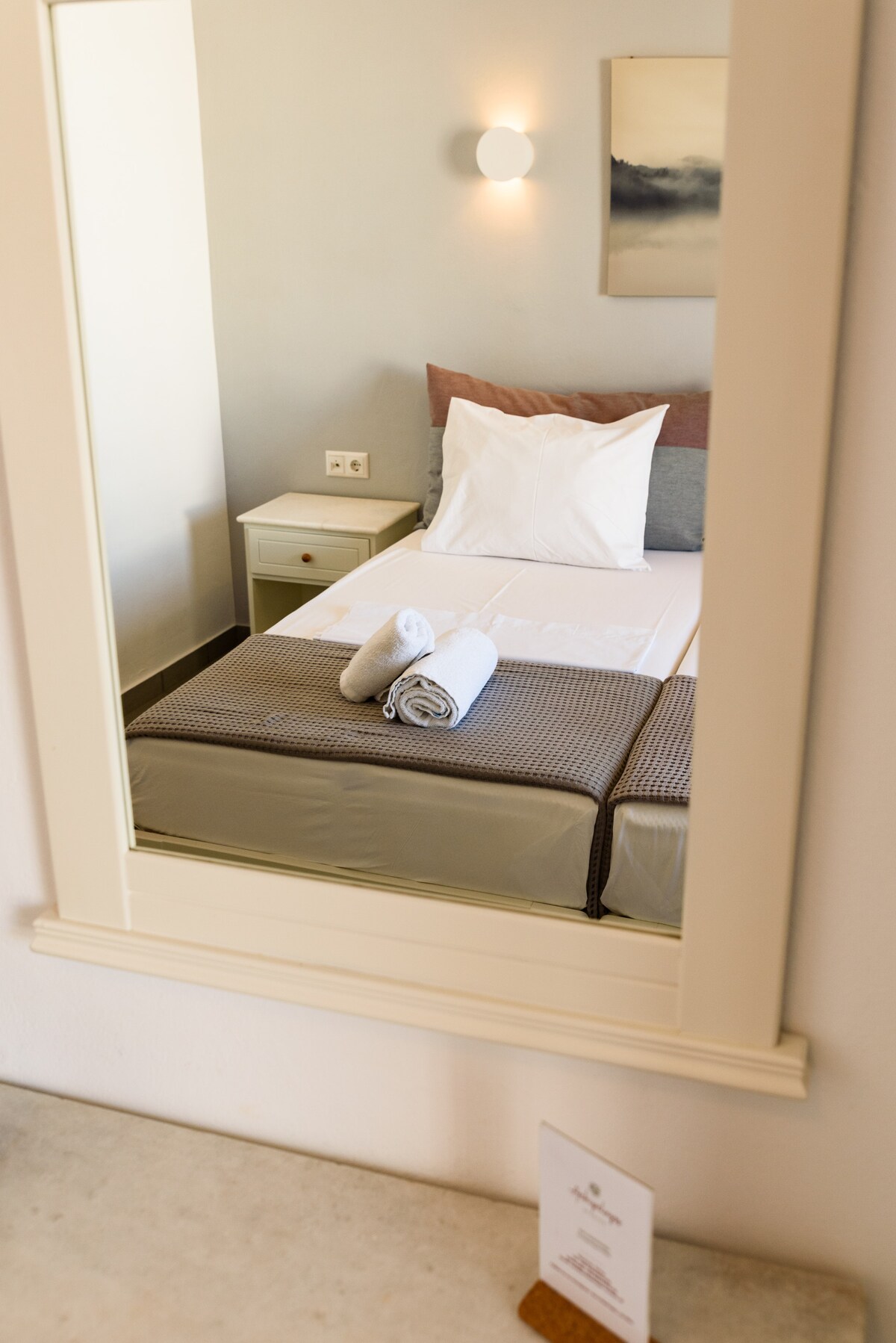 A very romantic room with magnificent sea view all over Piso livadi , the Aegean sea and the traditional pier . There is daily cleaning and after 2 days stay e change towels and every third day the sheets . We are always around in order to offer you a nice and pleasant stay in our place !!!