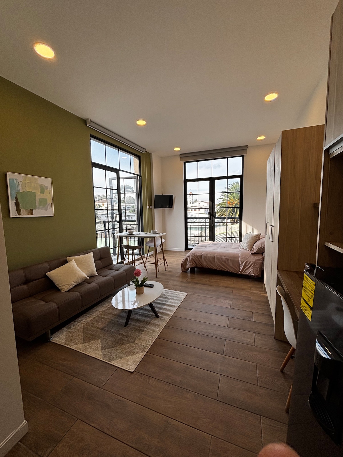 Suite with modern design, strategically located a few blocks from Cumbayá Park, which offers a great selection of bars and restaurants. San Francisco University and shopping centers are within walking distance, Mariscal Sucre Airport is 25 minutes away and public transport is 120 meters away. 24/7 virtual security. Free parking for a medium-sized vehicle.