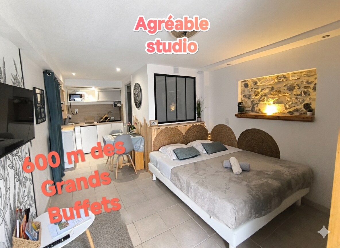 Enjoy our charming studio on the 1st floor, recently renovated, located in the heart of Narbonne, a short walk from the cathedral, the train station, and Les Halles . It offers a comfortable bed 140x190, possibility of baby umbrella bed, a fully equipped kitchen, bathroom , TV and free WiFi. Nearby, discover exceptional restaurants. Ideal for a romantic getaway or urban adventure, this studio is your gateway to explore the treasures of Narbonne and Occitanie.