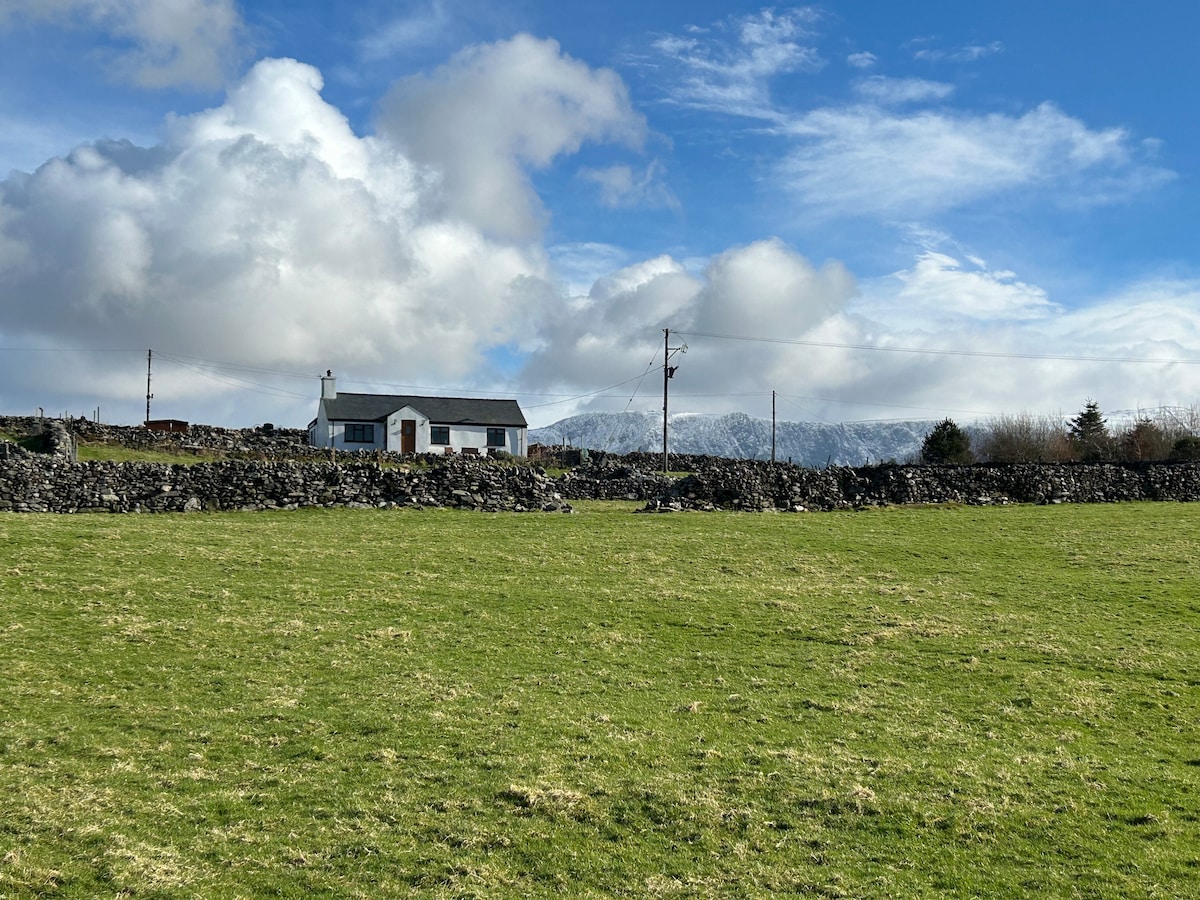 You're assured a warm welcome to this beautifully restored small barn, now a cosy cottage with exclusive use of all year round hot tub! Stunning location bordering Snowdonia (10 mins walk to Park). On clear days Snowdon, Yr Wyddfa, herself is in full view. Free Electric car charge. Close to castles, Llyn Peninsula, much beautiful coastline, stone's throw from Anglesey & more! Suitable for couples/one individual. Come, pamper yourself on a restorative break, explore a glorious area, North Wales!