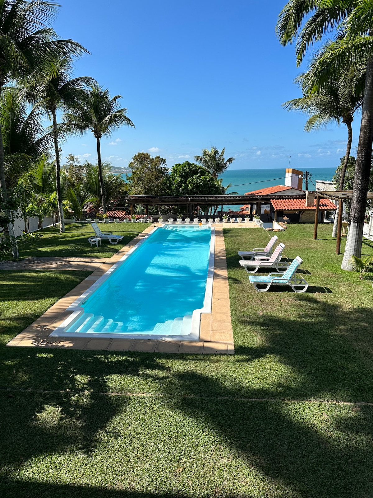 Relax in this fully AIR-CONDITIONED space. A unique apartment with a sea view, a property with access to the beach and, in addition, a great swimming pool for adults and children with a wooden deck that offers a view of Morro do Careca. A complete apartment with AIR-CONDITIONING IN THE LIVING ROOM AND BEDROOM, a refrigerator, a one-burner induction stove, a dryer, cable TV, Wi-Fi, free and rotating parking, daily cleaning. A really great place for a couple to spend their weekend or vacation.